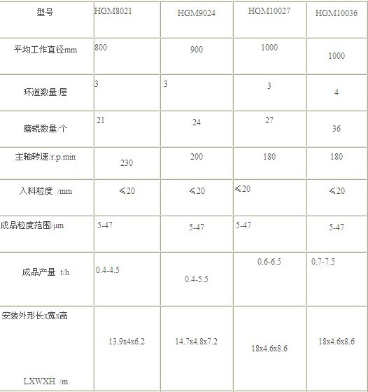 HGM三環(huán)中速超細(xì)磨粉機(jī):加工細(xì)度在325-3000目之間(細(xì)度可以任意調(diào)節(jié))。